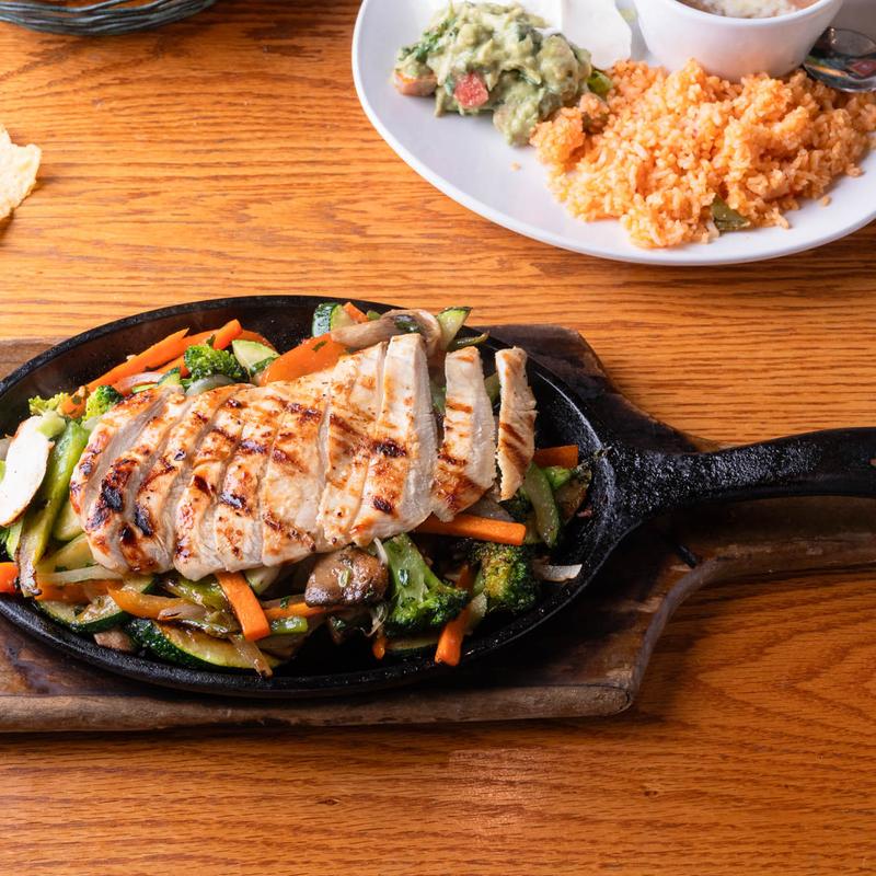 Beef $27.95 | Shrimp $31.95 | Chicken $26.95 | Veggies $25.95 • Served sizzling hot to your table! Marinated in tequila with our special herbs. Grilled to perfection with sautéed seasonal vegetables, garlic, & cilantro. Guacamole & sour cream garnish.